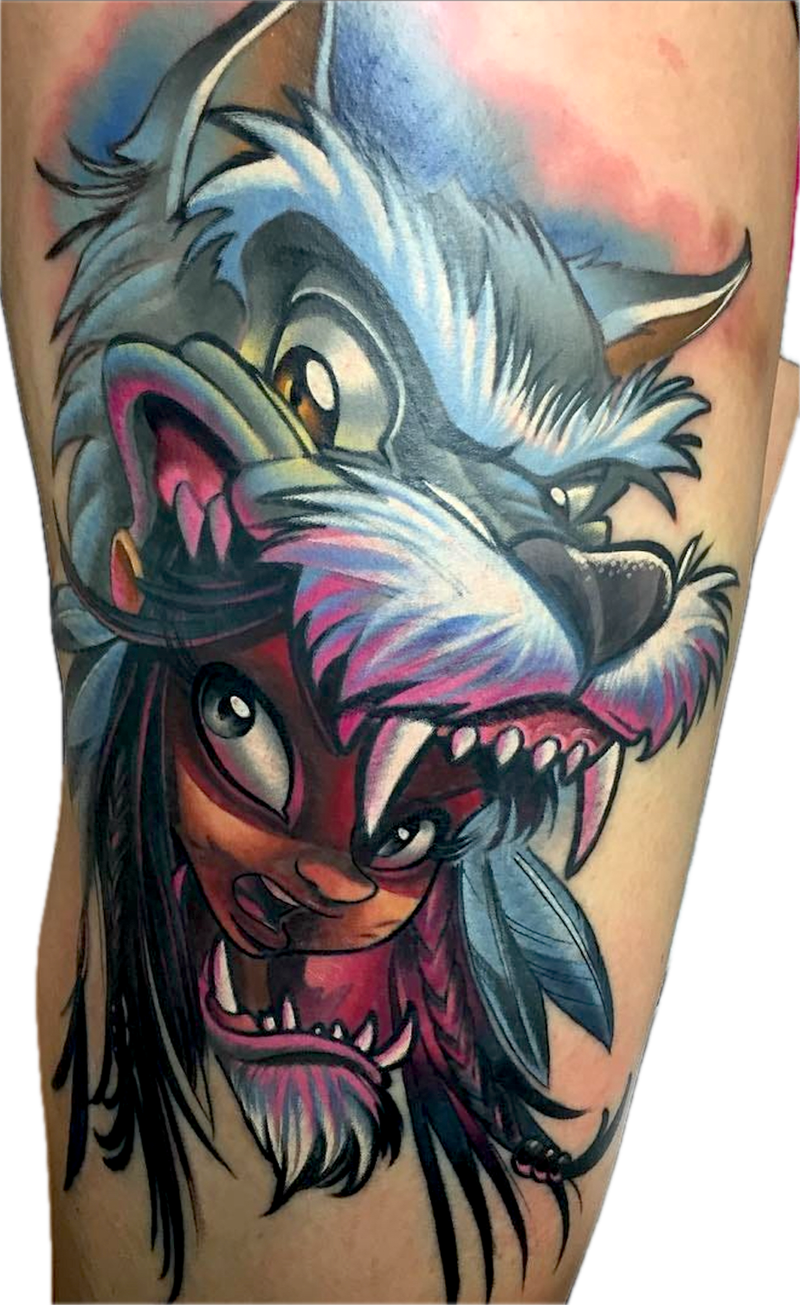 Eye-catching color scheme - Yes, this is not the first tattoo style to feature bright colors, but still - there is a difference between regular color tattoos and the bright colors that appear in new school tattoos. Vibrant color palettes used by these tattooists, possibly, are most focused and eye-catching feature of this style, which, combined with other characteristics, makes the new school tattoo style recognizable and unique.