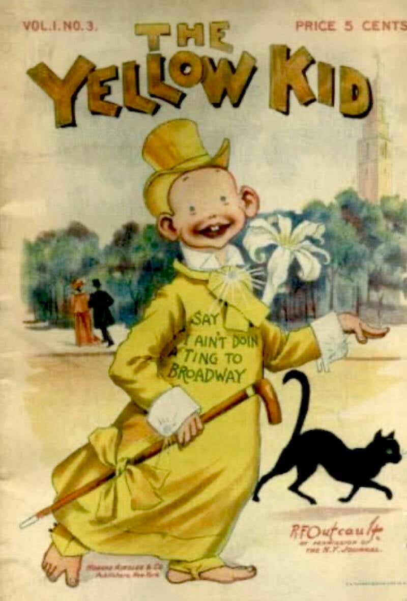 Published in 1897 book, The Yellow Kid in McFadden's Flats, is considered to be the first comic book to the extent that it featured the phrase "comics" on the back cover.