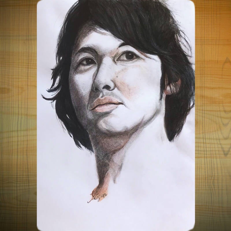 Our friend is exceptionally skilled in one of the most challenging genres: realistic portraiture. Here is a portrait of Fumito Ueda, drawn by Yūgen. While the photo may not capture all the details and structural texture, it certainly showcases a beautiful artistic expression.