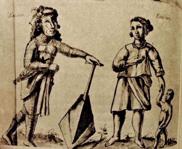 This fact amplifies our theory about the origins of the Polynesian islanders and their tradition of tattooing. Illustration from Historia de las Islas e Indios de Bisayas showing a tattooed Visayan horo-han (common warrior) with a leaf-shaped blade (bugsay). Horo-han served as karakoa rowers and warriors.