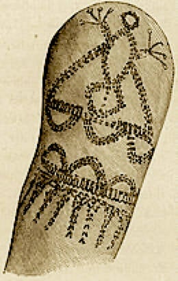Ancient clay human figurines found at archaeological sites in the Batanes Islands, around 2,500 to 3,000 years old, have simplified stamped circles that clearly represent tattoos. At the Arch Cave burial site in Cagayan province, northern Luzon chiseled and notched heads, possibly bone tattooing tools, have been found. They were dated before 1500. B.C. and are very similar to the comb-type tattoo chisels found throughout Polynesia.