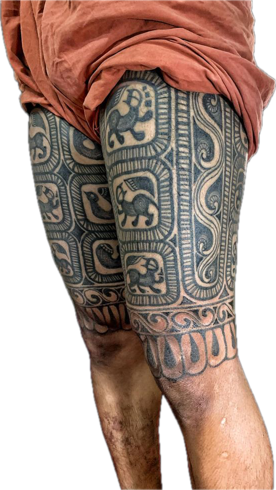 One of the most common tattoos on Lanna’s legs was "Yantra", a mystical symbol (animal) believed to protect it from harm. Yantras were not only symbols of protection but were also considered a source of strength. In the hierarchical society of the Lanna kingdom, leg tattoos also played an important role in communicating one's social status. The more elaborate and extensive the tattoos, the higher the person’s status. A well-decorated set of leg tattoos was a mark of honor and distinction.
