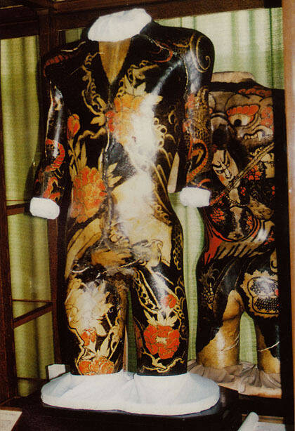 The Japanese yakuza are considered the most prominent criminal syndicate in the world, as well as the richest. Although many of its members hold positions in media organizations and government posts. Hidden in public, under long sleeves, shirts and high collars, members of the yakuza wear some of the largest and most elaborate body suits in the world. Many are almost completely covered from the neck to the ankles. Yakuza still use traditional tattooing methods by visiting experienced irezumi masters. While tattooing was illegal, the yakuza adopted the practice as their own and it soon became, in the words of Tokyo-based master artist Horitoku Shorai, "an integral part of their way of life," and their apparent love of crime seems to be matched only by their love of tattoos.