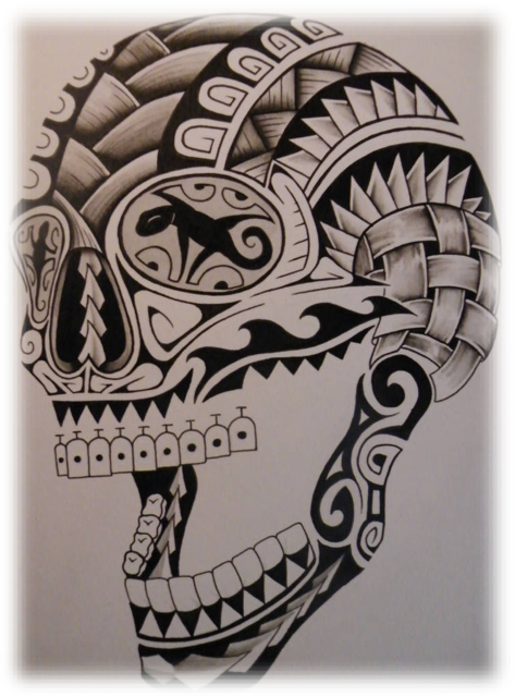 Tribal skulls are unique designs that combine elements of antiquity and modern aestheticism. This skull is geometrically shaped and is usually decorated as a memorial to those who have passed away. They can be depicted by anyone who respects their own culture and nation as a way of honoring their ancestors, as for example is popular to use Maori cultural tattoo patterns by creating them in the shape of a skull. One of the design styles is known as Neo-tribal design combining traditional tribal patterns with curved gothic lines. One of the rare skulls that can be depicted as a futuristic and digital representation without losing its central meaning, containing the history, story, belonging and personal significance.