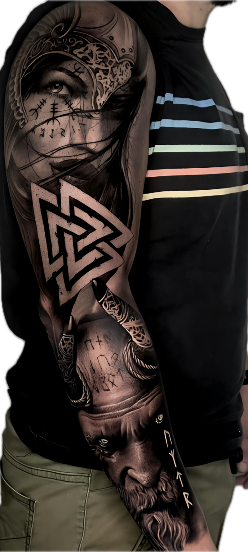 NeoNordik is an offshoot of the same style that successfully has found references from Scandinavian myths and deities. The main difference from the base style is in the ink …. black or black with water ink :)
