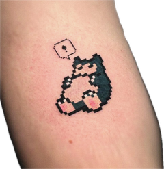Pixel tattoos, much like classic video games, use large squares and bright colors; these are designs that intentionally incorporate the blocky, square appearance of early digital graphics. Each element is carefully crafted to look as though it is made of tiny squares, or "pixels", creating fun and eye‑catching designs. These tattoos are ideal for anyone who wants a light and charmingly unique piece of art on their skin.